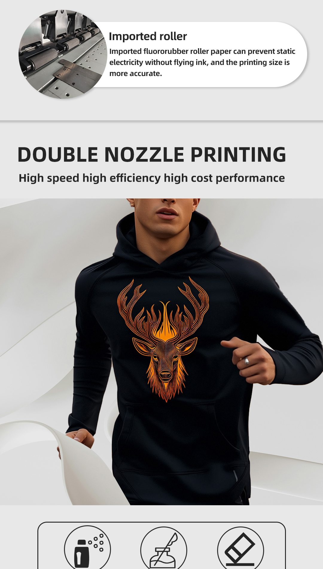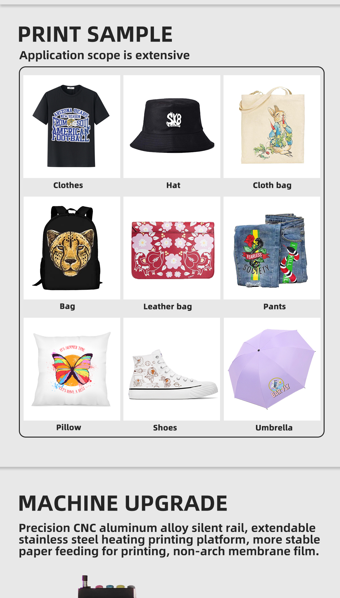 The 400D-13inch excels in various commercial DTF applications, including producing vibrant, durable prints for T-shirts, caps, bags, and other custom apparel. Its high efficiency ensures a fast payback period, enabling on-demand production in small to medium enterprises with tight deadlines. Organizations can integrate this dtf transfer printer into existing textile workflows, supported by user-friendly software and reliable hardware, delivering stable, repeatable results crucial for customer satisfaction and operational scalability in personalized merchandise production.